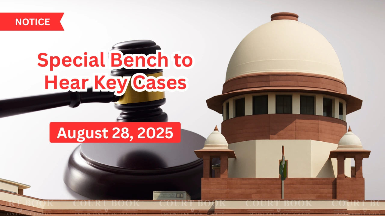 The Supreme Court of India has issued a notice announcing the constitution of a Special Bench for hearing important cases on August 28, 2025 (Thursday). The bench will sit in Court No. 5 at 1:15 p.m.